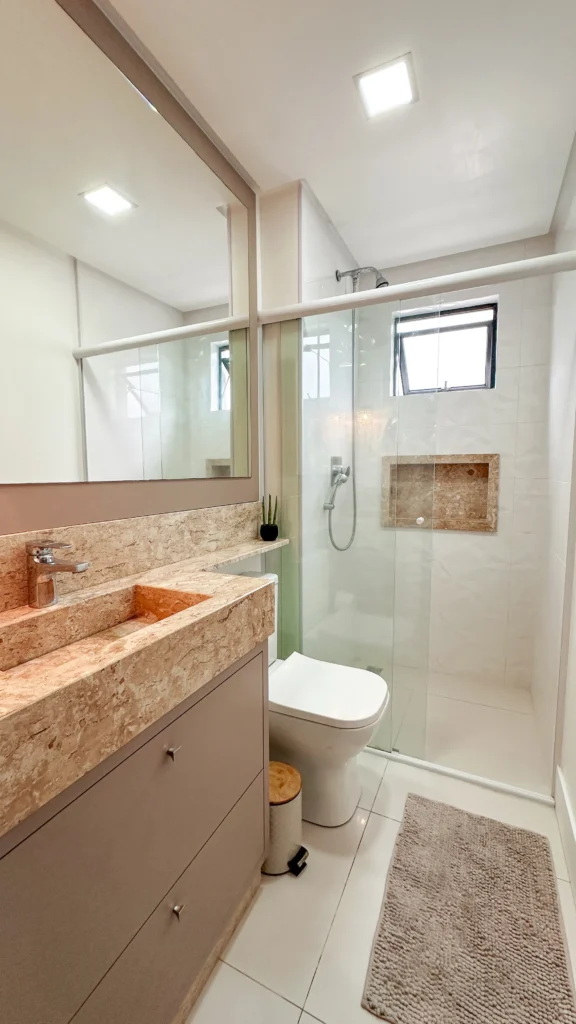 – 02 banheiros mobiliados, com aquecimento a gás;