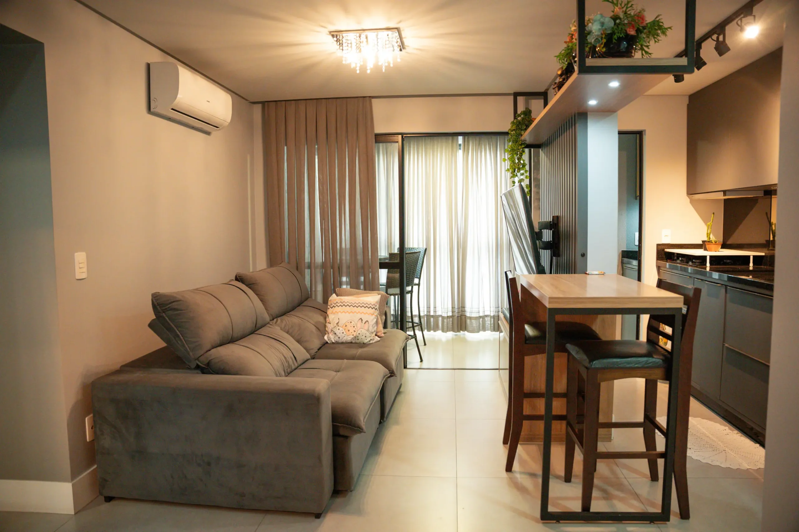 – Sala de estar e jantar integradas;