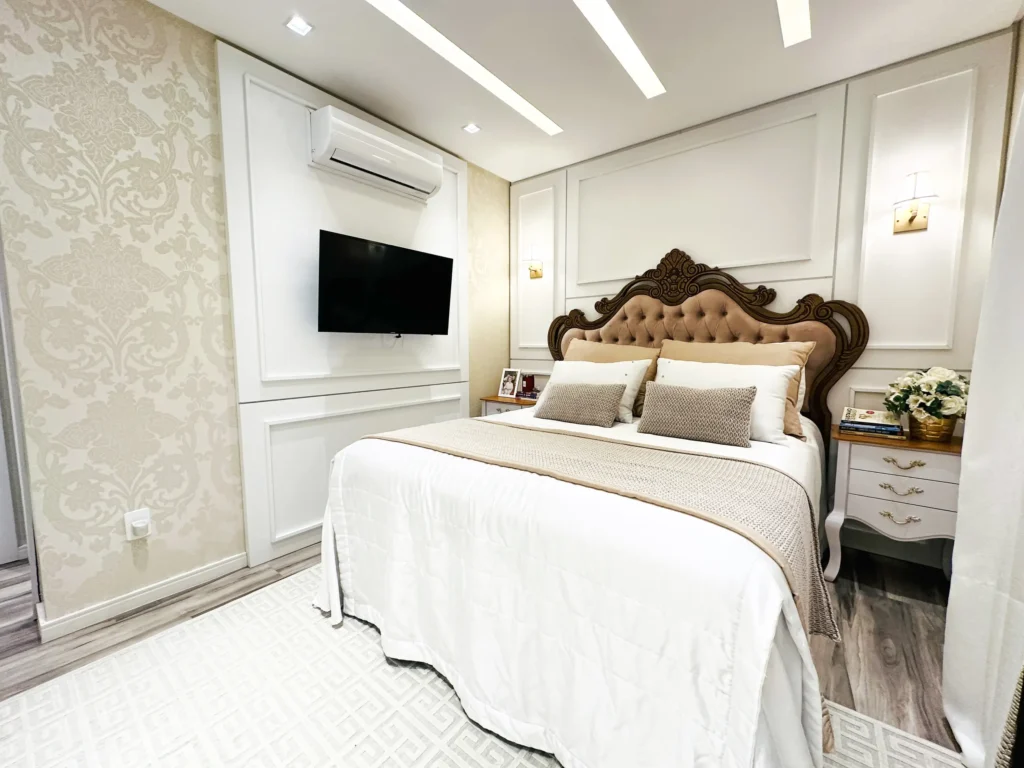 Apartamento mobiliado de alto padrão com 86m², 2 suítes, churrasqueira e 2 vagas cobertas. Acabamentos de qualidade, condomínio com piscina, academia e área de festas, em localização privilegiada próxima ao Centro e Vila Germânica.