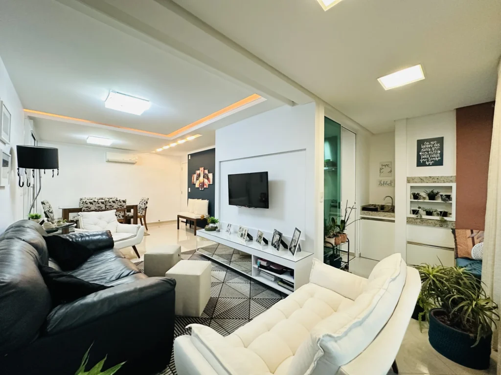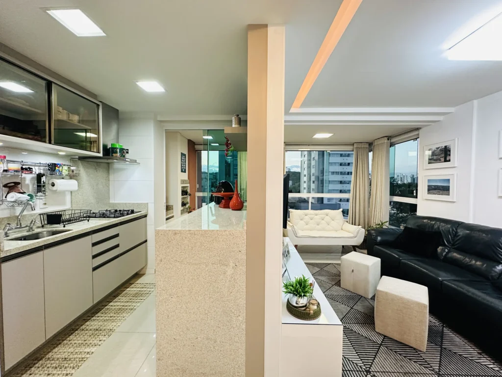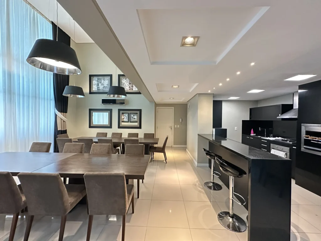 – Sala de estar e jantar integradas;