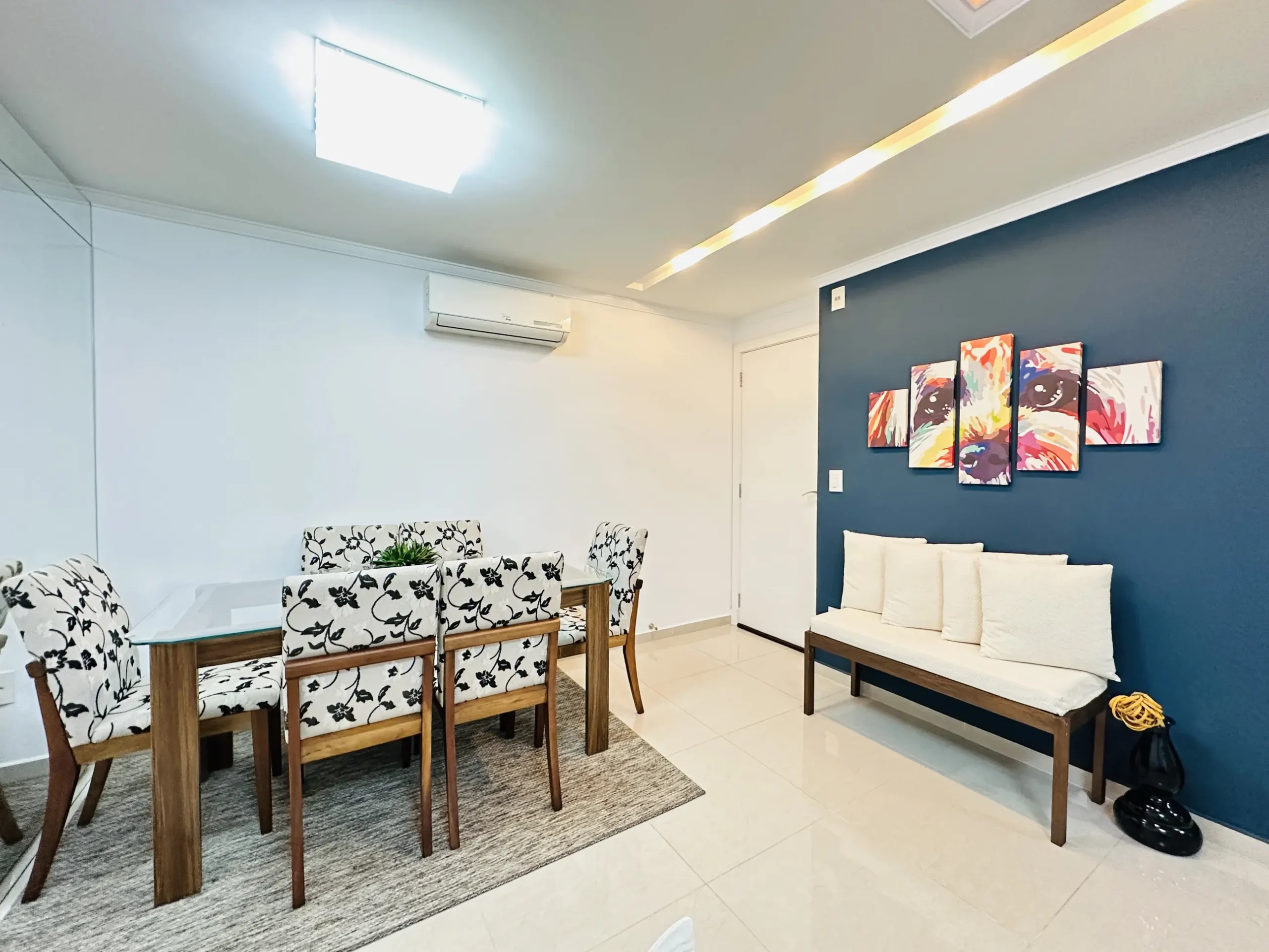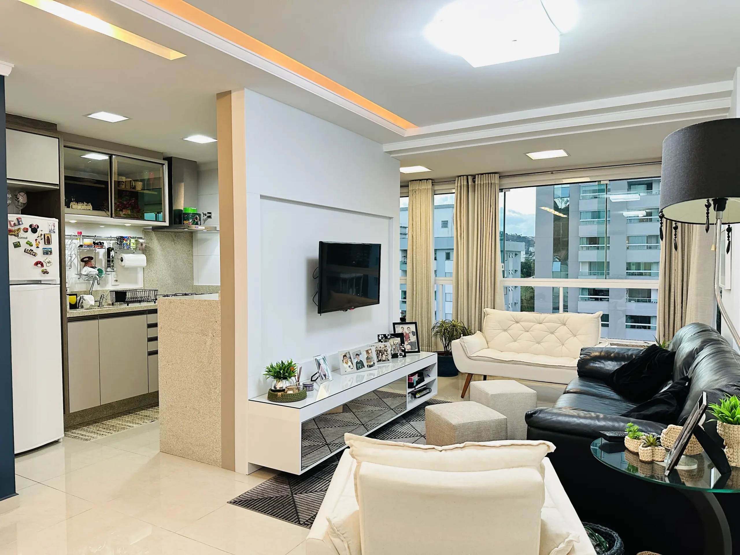– Sala de estar e jantar integradas;