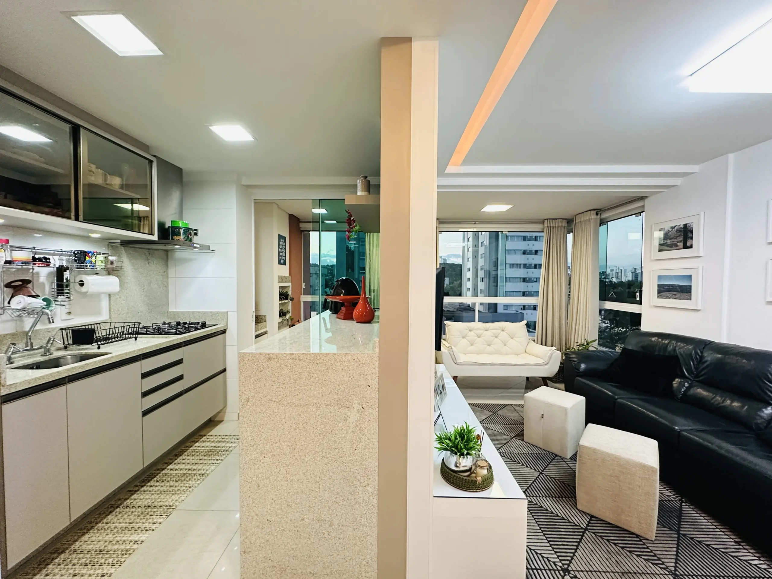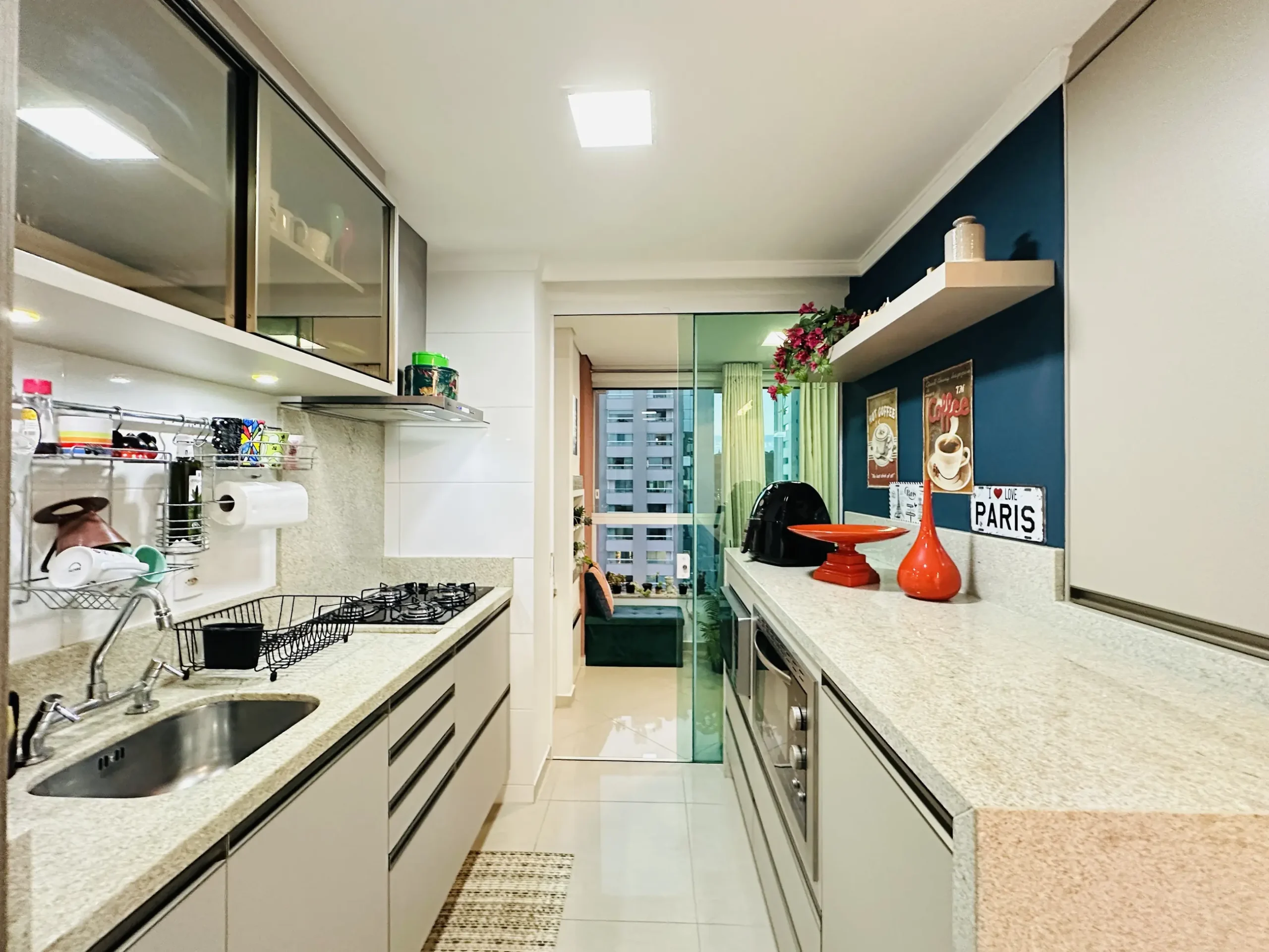– Sacada integrada, com churrasqueira;