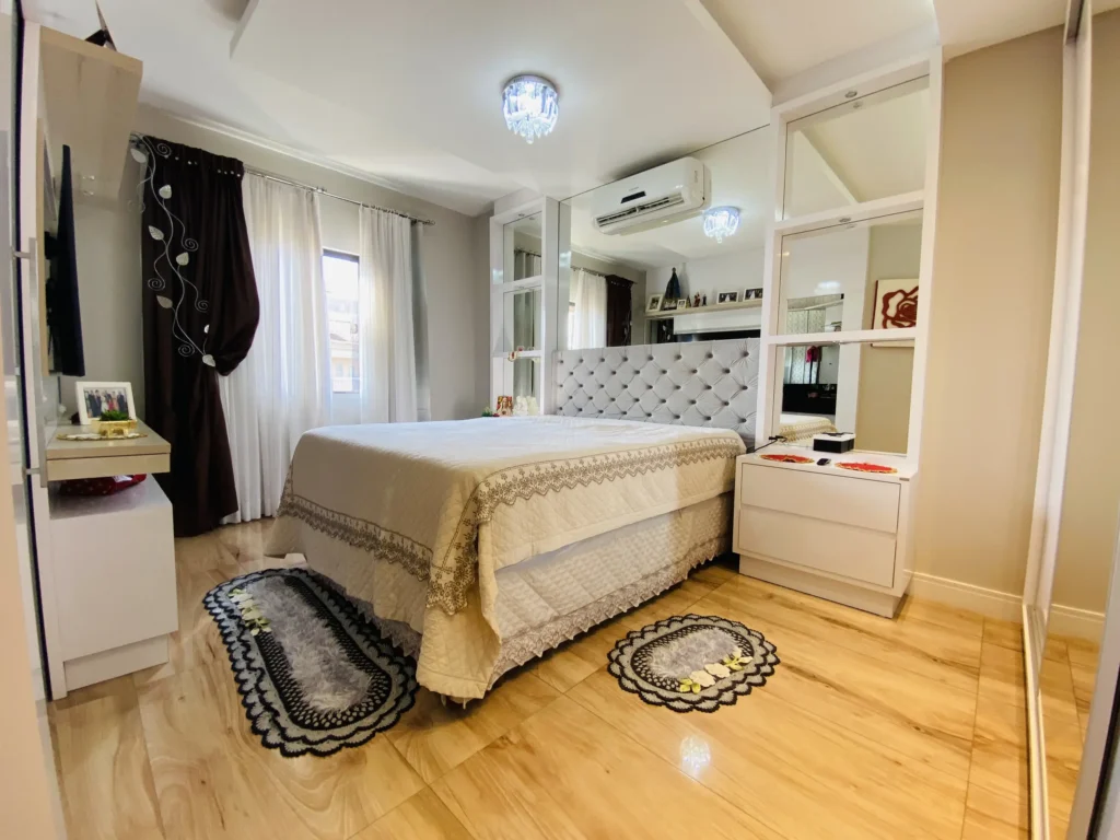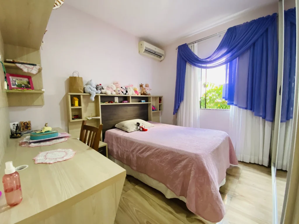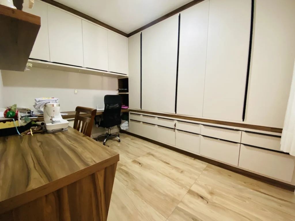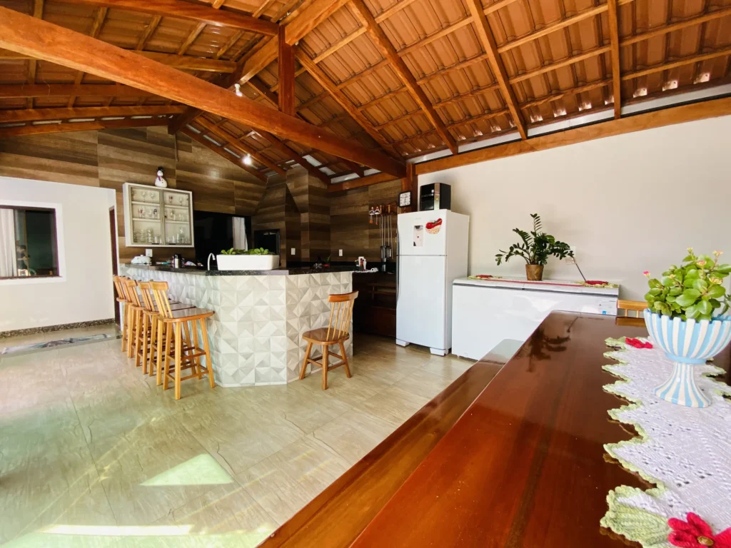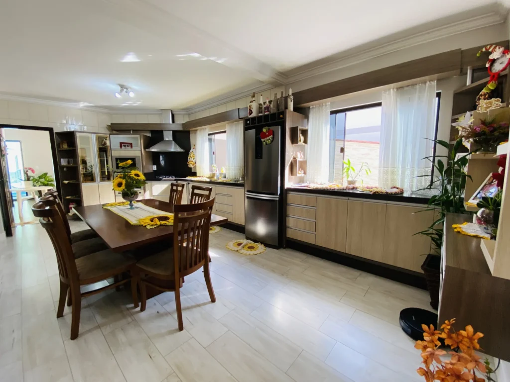 Casa mobiliada em Indaial com 220m², 3 dormitórios (1 suíte), área de festas com churrasqueira e fogão a lenha, piscina aquecida e escritório. Terreno de 425m², em rua sem saída próxima à BR470.