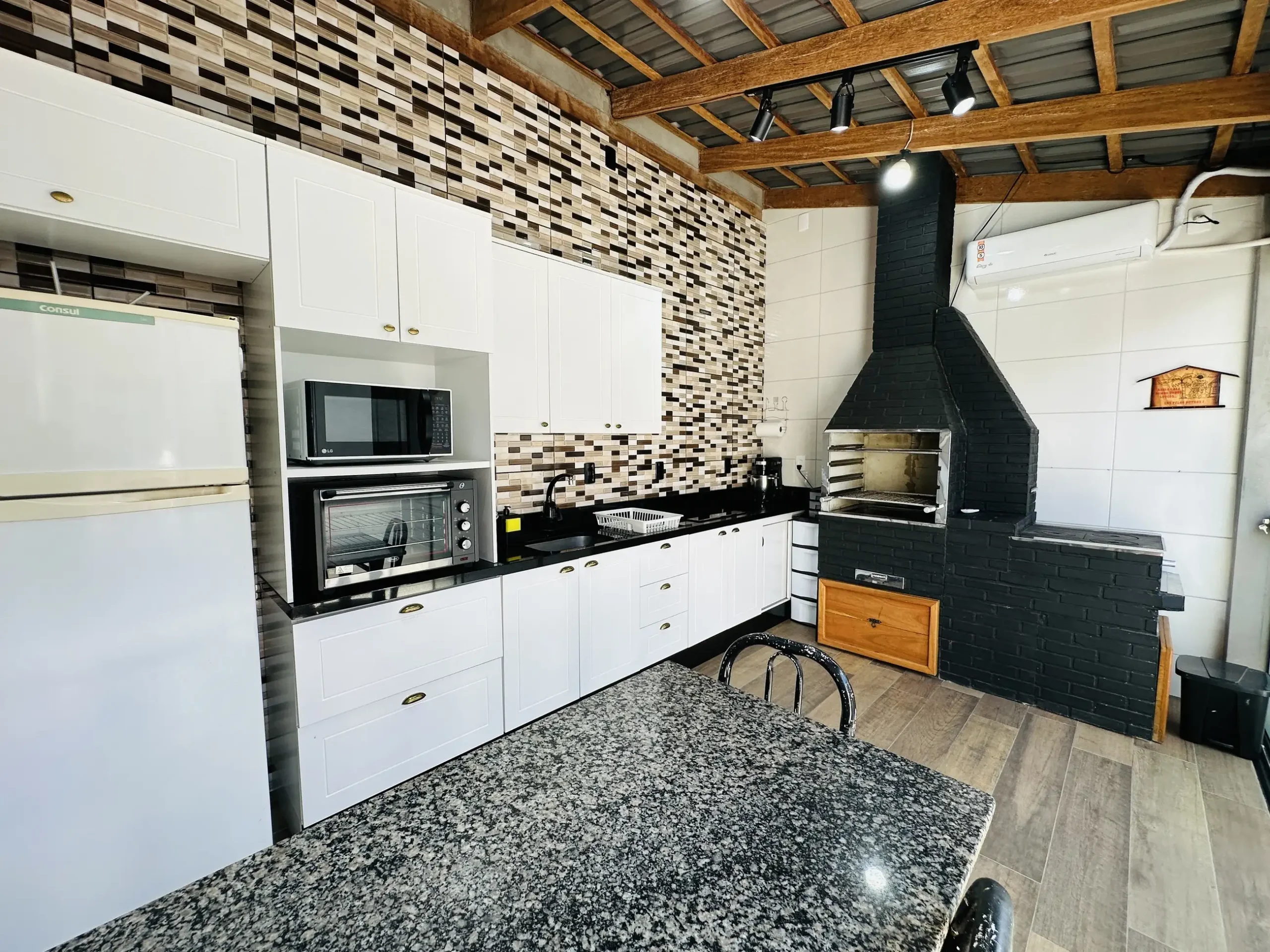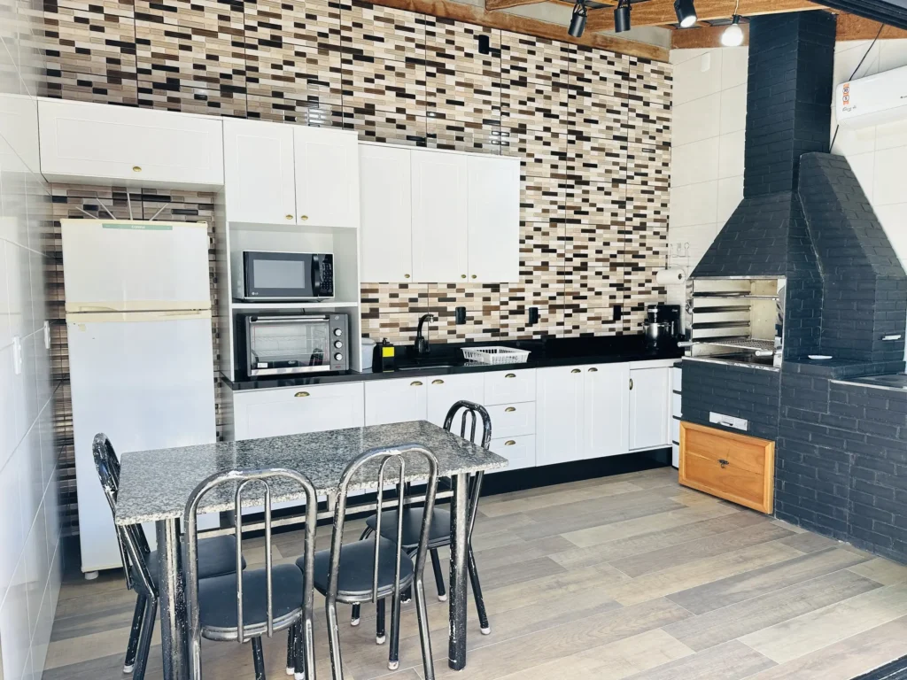 – Área de festas com churrasqueira e fogão a lenha;