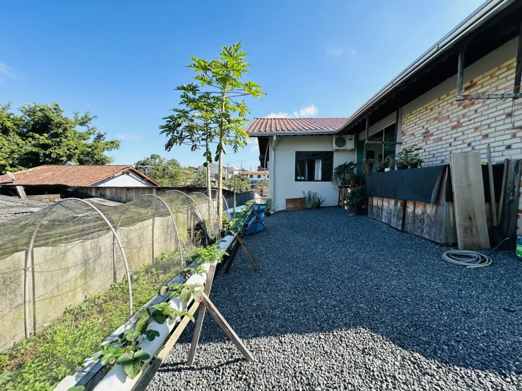 Casa na Fortaleza Alta com 174m², 3 dormitórios (1 suíte), área de festas com churrasqueira e fogão a lenha, quintal e 2 vagas cobertas. Semimobiliada, em terreno de 417m² e localização privilegiada próxima a comércios e serviços.