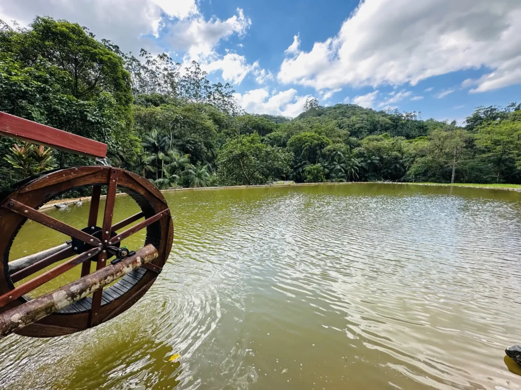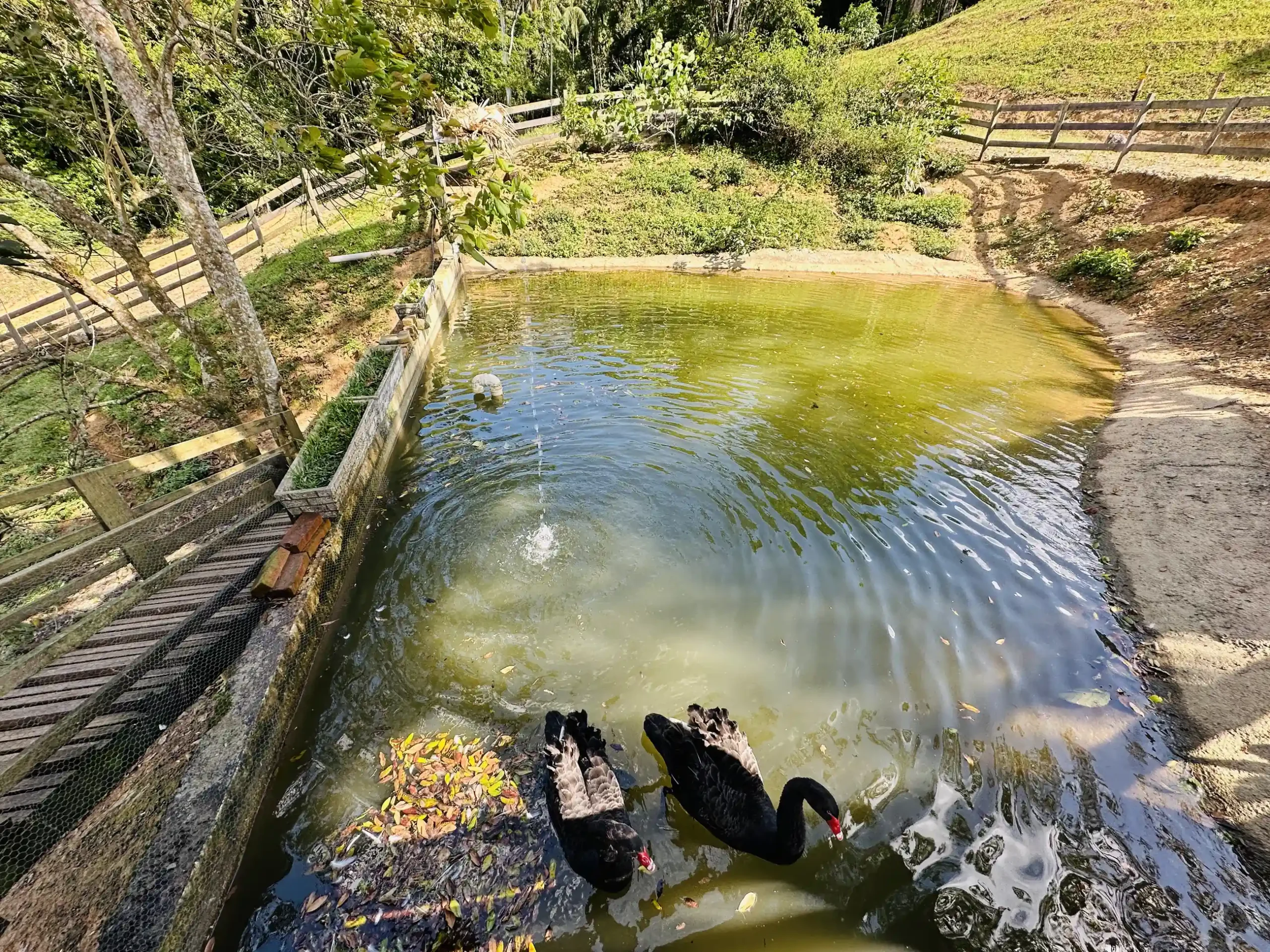 A lagoa possui aproximadamente 200m² de lâmina de água e está repleta de peixes.
