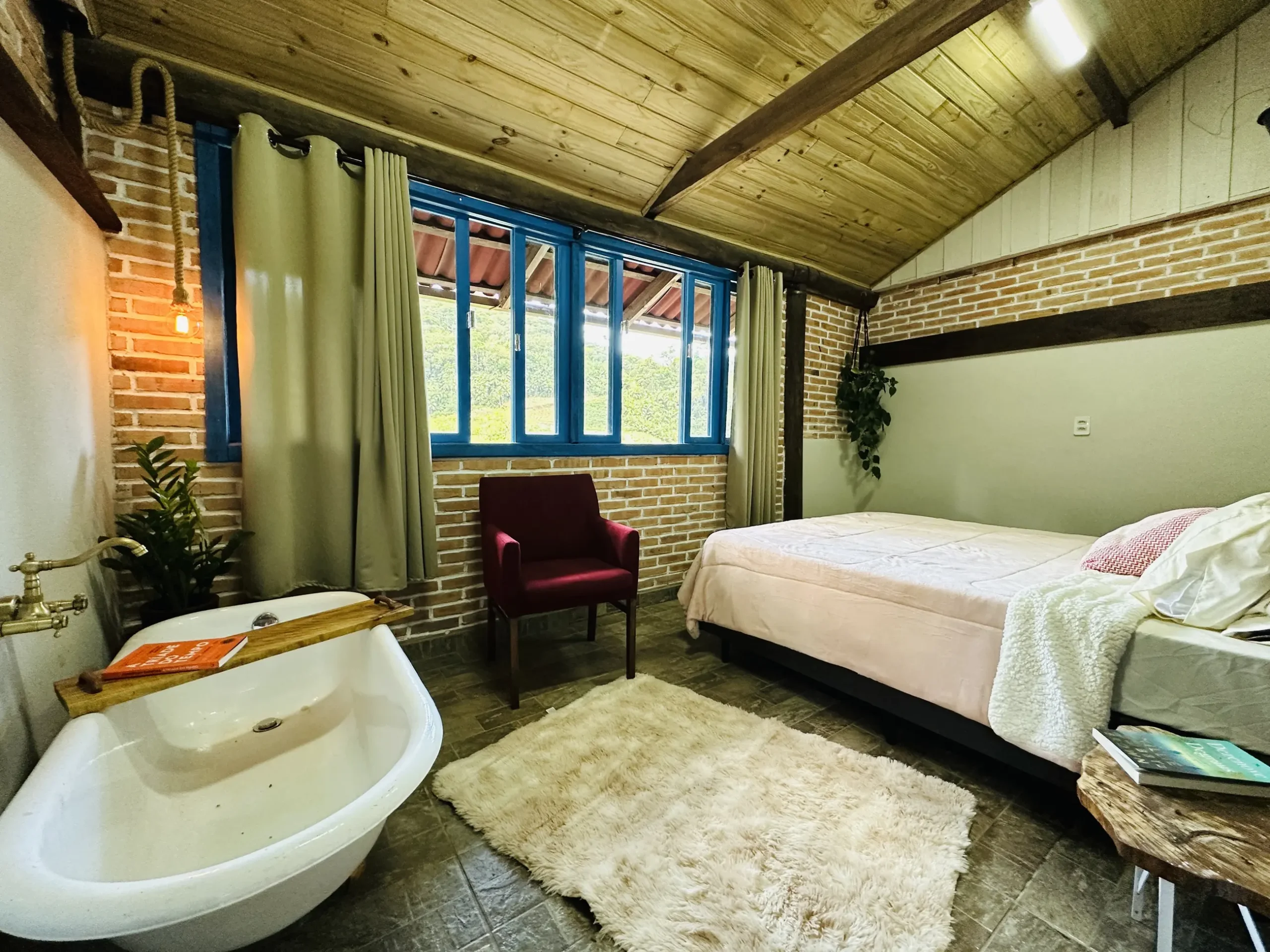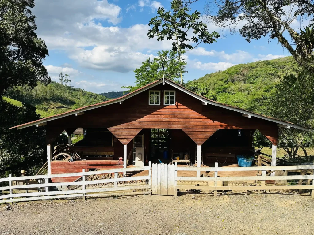 Possui 01 rancho no estilo americano de 100m² com mezanino, com todos equipamentos de manutenção da vida rural, com espaço para cabras, ovelhas, galinheiro e amplo pasto.