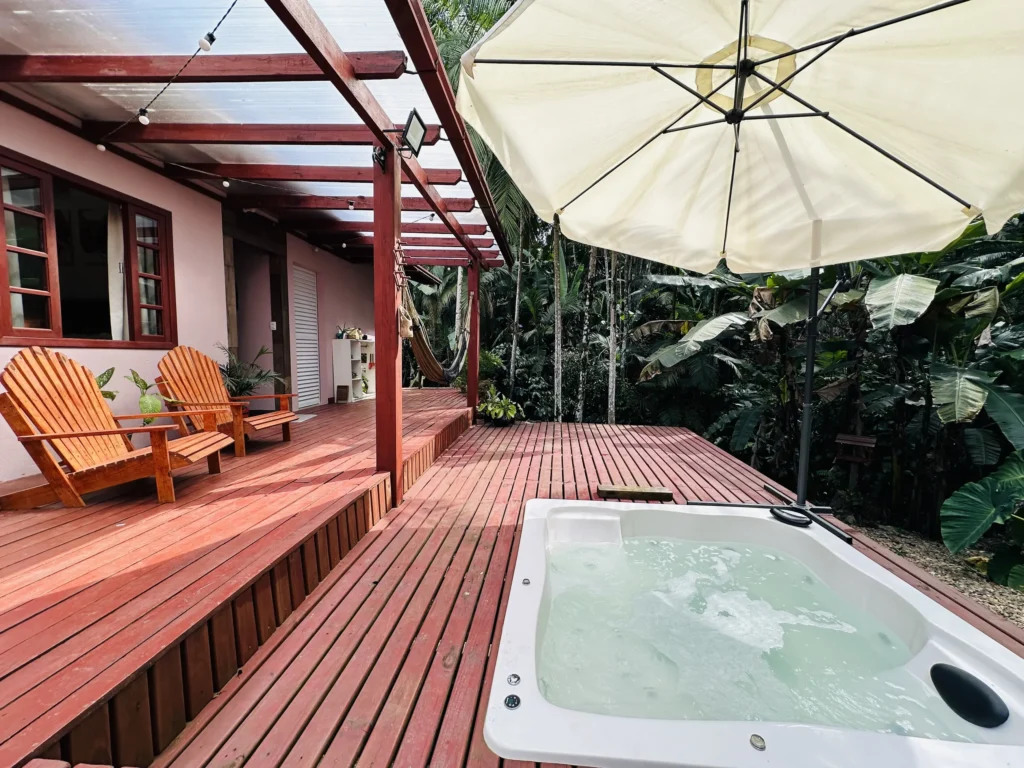 – Área de festas com churrasqueira, jacuzzi, balanço e deck.