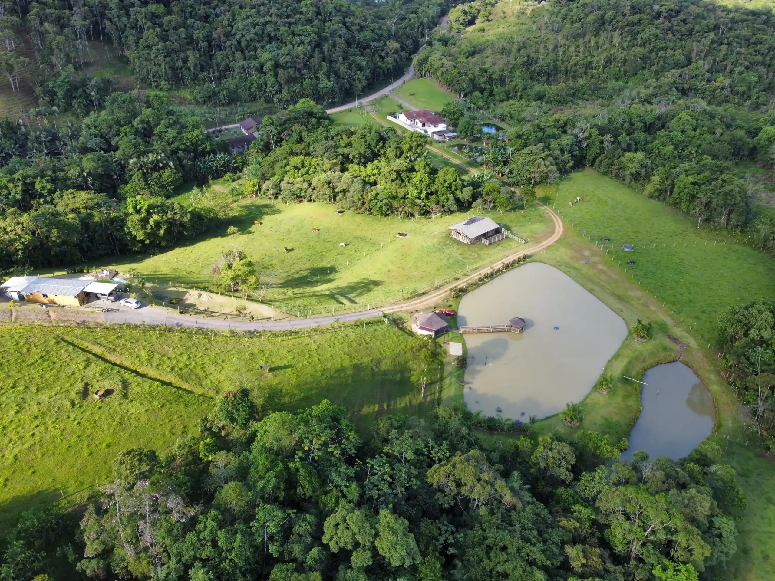 Possui uma infraestrutura completa, incluindo uma casa container moderna, quiosque, 02 lagoas, galinheiro, mangueira, chiqueiro, curral e ampla área de pastagem.