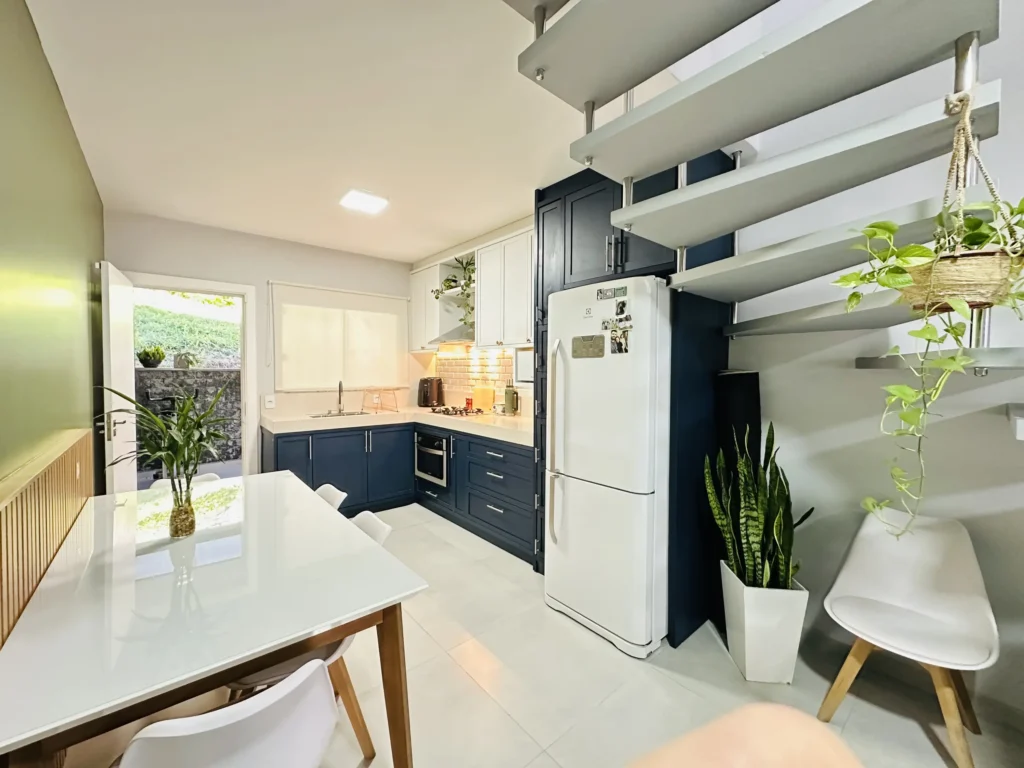 Sobrado semimobiliado na Água Verde com 78m², 2 suítes, área externa com churrasqueira e 1 vaga coberta. Móveis sob medida, eletros, ar-condicionado e automatizações, em localização estratégica próxima a comércios.